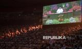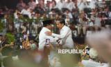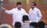 REPUBLIKA.CO.ID, BOGOR -- Presiden yang juga Ketua Umum Partai Gerindra Prabowo Subianto bersama Presiden Ke-7 Joko Widodo menghadiri perayaan HUT Ke-17 Partai Gerindra di Sentul International Convention Center, Bogor, Jawa Barat, Sabtu (15/2/2025).