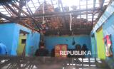 Warga membersihkan sisa genting yang rusak akibat ledakan gas elpiji di Kelurahan Wergu Kulon, Kudus, Jawa Tengah, Sabtu (15/2/2025). Ledakan yang diduga dari kebocoran gas elpiji yang terjadi pada Jumat (14/2) itu mengakibatkan satu rumah rusak berat dan satu orang mengalami luka bakar dan mendapat perawatan di rumah sakit. (FOTO : ANTARA FOTO/Yusuf Nugroho)
