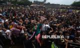 Warga berebut paket durian yang dibagikan saat Festival Durian Jatinom 2025 di Randulanang, Jatinom, Klaten, Jawa Tengah, Ahad (16/2/2025). Selain membagikan sebanyak 5.000 paket durian secara gratis, pada kegiatan festival tersebut juga sebagai tanda rasa syukur atas hasil buah durian yang baik serta untuk mengenalkan potensi buah durian Jatinom kepada masyarakat. (FOTO : ANTARA FOTO/Aloysius Jarot Nugroho)
