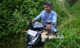 Warga membawa anjingnya menggunakan motor menaiki perbukitan saat mengikuti ajang buru babi di Nagari Tanjung Barulak, Tanah Datar, Sumatera Barat, Ahad (16/2/2025). Tradisi berburu babi itu dilakukan dua kali dalam seminggu untuk membantu petani memberantas hama babi hutan yang merusak tanaman dan perkebunan sekaligus rekreasi dan olahraga para pehobi berburu. (FOTO : ANTARA FOTO/Iggoy el Fitra)