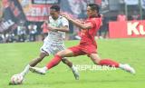 Pesepak bola Persija Jakarta Rizky Ridho (kanan) berebut bola dengan pesepak bola Persib Bandung Beckham Putra (kiri) dalam laga lanjutan Liga 1 di Stadion Patriot Candrabhaga, Bekasi, Jawa Barat, Ahad (16/2/2025). Persija gagal meraih kemenangan setelah ditahan Persib dengan skor 2-2. Gol Persija dicetak Gustavo Almeida di menit ke-33 dan Firza Andika menit 39. Sedangkan gol Persib dicetak Nick Kuipers menit 52 dan David da Silva menit ke-70. (FOTO : ANTARA FOTO/Akbar Nugroho Gumay)