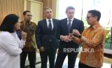REPUBLIKA.CO.ID, JAKARTA -- Menteri Kesehatan RI Budi Gunadi Sadikin berbincang dengan President of Asia Pacific MSD David Peacock, Managing Director MSD Indonesia George Stylianou, External Affairs Director MSD Indonesia Dudit Triyanto dan Dirjen Kefarmasian dan Alat Kesehatan Lucia Rizka Andalusia seusai penandatanganan perjanjian kerja sama antara MSD Indonesia dan Bio Farma, di Jakarta, Kamis (13/2/2025).