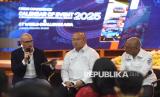 Championship Director SRO Motorsports Benjamin Franassovici (kiri) bersama Direktur Komersial Injourney Tourism Development Corporation (ITDC) Troy Reza Waroka (tengah) dan Direktur Utama Mandalika Grand Prix Association (MGPA) Priandhi Satria (kanan) memberikan keterangan dalam konferensi pers jelang perhelatan GT World Challenge Asia & Calendar of Event 2025 The Mandalika di Kantor InJourney, Sarinah, Jakarta, Selasa (18/2/2025). Pertamina Mandalika International Circuit di Lombok akan menjadi tuan rumah GT World Challenge Asia 2025 yang akan berlangsung 9-11 Mei 2025 untuk seri balap ronde ke-3 dan ke-4 musim ini. (FOTO : ANTARA FOTO/Indrianto Eko Suwarso)