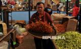 Pedagang cabai merah rawit beraktivitas di Pasar Induk Kramat Jati, Jakarta Timur, Selasa (18/2/2025). Memasuki dua pekan jelang bulan Ramadan 1456 Hijriah, pasokan cabai, bawang merah dan bawang putih cenderung stabil untuk menjaga harga tidak mengalami kenaikan secara drastis. Untuk harga cabai rawit merah saat ini berkisar Rp65 ribu hingga Rp70 ribu per kilogram, harga cabai merah keriting Rp35 ribu hingga Rp45 ribu, sementara untuk harga bawang merah berkisar Rp30 ribu hingga Rp35 ribu dan bawang putih Rp40 ribu hingga Rp45 ribu. Dalam satu hari, pasokan bawang merah ke Pasar Induk Kramat Jati sekitat 89 ton dan cabai merah keriting 25 ton per hari. (FOTO : Republika/Thoudy Badai)