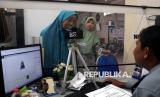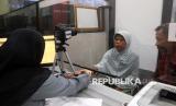 REPUBLIKA.CO.ID, BLITAR -- Calon jamaah haji (CJH) berbincang dengan petugas saat perekaman data paspor di Kantor Imigrasi Kelas II Non TPI Blitar, Jawa Timur, Selasa (18/2/2025).