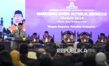 REPUBLIKA.CO.ID, JAKARTA Presiden Prabowo Subianto didampingi Ketua Mahakamah Agung (MA) Sunarto dan Wakil ketua MA bidang Non Yudisial Suharto menghadiri sidang istimewa laporan tahunan MA 2024 di Gedung MA, Jakarta, Rabu (19/2/2025).