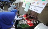 Warga membeli daging dan kebutuhan pokok lainnya dengan harga lebih murah dari pasaran saat acara Bazar Murah yang digelar Dinas Perdagangan (Disdagin), Kota Bandung, di Taman Nilem, Rabu (19/2/2025). Bazar Murah dilaksanakan di 30 kecamatan, sebagai upaya menjaga stabilitas harga dan memberikan kemudahan akses bagi masyarakat dalam memenuhi kebutuhan pokok dengan harga terjangkau khususnya jelang Ramadhan. (FOTO : Edi Yusuf)
