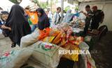 Warga membeli kebutuhan pokok dengan harga lebih murah dari pasaran saat acara Bazar Murah yang digelar Dinas Perdagangan (Disdagin), Kota Bandung, di Taman Nilem, Rabu (19/2/2025). Bazar Murah dilaksanakan di 30 kecamatan, sebagai upaya menjaga stabilitas harga dan memberikan kemudahan akses bagi masyarakat dalam memenuhi kebutuhan pokok dengan harga terjangkau khususnya jelang Ramadhan. (FOTO : Edi Yusuf)