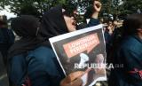 Mahasiswa Universitas Negeri Makassar melakukan aksi unjuk rasa di depan Kampusnya di Makassar, Sulawesi Selatan, Rabu (19/2/2025). Dalam aksinya tersebut mereka menyuarakan sejumlah tuntutan termasuk perhatian terhadap anggaran pendidikan dan kesehatan. (FOTO : ANTARA FOTO/Arnas Padda)