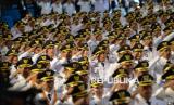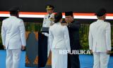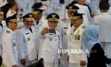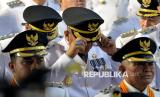 Sejumlah kepala daerah terpilih memberi hormat saat dilantik di kompleks Istana Kepresidenan, Jakarta, Kamis (20/2/2025). Presiden Prabowo Subianto melantik 961 kepala daerah yang terdiri dari 33 gubernur dan 33 wakil gubernur, 363 bupati, 362 wakil bupati, 85 wali kota, dan 85 wakil wali kota dalam upacara tersebut. (FOTO : Republika/Edwin Dwi Putranto)