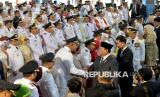 Presiden Prabowo Subianto melantik kepala daerah terpilih di kompleks Istana Kepresidenan, Jakarta, Kamis (20/2/2025). Presiden Prabowo Subianto melantik 961 kepala daerah yang terdiri dari 33 gubernur dan 33 wakil gubernur, 363 bupati, 362 wakil bupati, 85 wali kota, dan 85 wakil wali kota dalam upacara tersebut. (FOTO : Republika/Edwin Dwi Putranto)