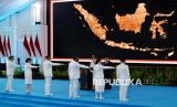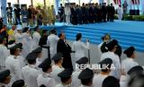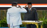 Presiden Prabowo Subianto memberi hormat saat melantik kepala daerah terpilih di kompleks Istana Kepresidenan, Jakarta, Kamis (20/2/2025). Presiden Prabowo Subianto melantik 961 kepala daerah yang terdiri dari 33 gubernur dan 33 wakil gubernur, 363 bupati, 362 wakil bupati, 85 wali kota, dan 85 wakil wali kota dalam upacara tersebut. (FOTO : Republika/Edwin Dwi Putranto)
