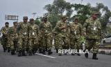REPUBLIKA.CO.ID, MAGELANG -- Sejumlah kepala daerah peserta retret yang mengenakan seragam komponen cadangan (komcad) berbaris setibanya di Kompleks Akademi Militer Magelang, Jawa Tengah, Jumat (21/2/2025).