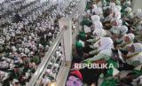 Peserta melafalkan huruf hijaiyah secara bersama di Gedung JHK, Jati, Kudus, Jawa Tengah, Ahad (23/2/2025). Sebanyak 3.230 Santri Raushah Tarbiyatul Qur (FOTO : ANTARA FOTO/Yusuf Nugroho)