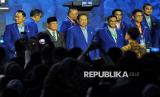 Kader Partai Demokrat saat menghadiri acara penutupan Kongres ke-VI Partai Demokrat di Jakarta, Selasa (25/2/2025). Hasil Kongres ke-VI Partai Demokrat tersebut menetapkan Agus Harimurti Yudhoyono (AHY) kembali menjadi Ketua Umum Partai Demokrat periode 2025-2030 yang dipilih secara aklamasi. Penutupan kongres tersebut dihadiri juga oleh Presiden dan Wakil Presiden Republik Indonesia Prabowo Subianto dan Gibran Rakabuming Raka, pimpinan DPR dan MPR, sejumlah petinggi partai politik hingga jajaran menteri dan wakil menteri Kabinet Merah Putih. (FOTO : Republika/Thoudy Badai)