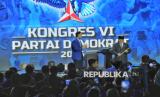 Ketua Umum Partai Demokrat Agus Harimurti Yudhoyono menyapa kader partai saat penutupan Kongres ke-VI Partai Demokrat di Jakarta, Selasa (25/2/2025). Hasil Kongres ke-VI Partai Demokrat tersebut menetapkan Agus Harimurti Yudhoyono (AHY) kembali menjadi Ketua Umum Partai Demokrat periode 2025-2030 yang dipilih secara aklamasi. Penutupan kongres tersebut juga dihadiri oleh Presiden dan Wakil Presiden Republik Indonesia Prabowo Subianto dan Gibran Rakabuming Raka, pimpinan DPR dan MPR, sejumlah petinggi partai politik hingga jajaran menteri dan wakil menteri Kabinet Merah Putih. (FOTO : Republika/Thoudy Badai)