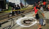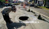 REPUBLIKA.CO.ID, TULUNGAGUNG -- Warga melihat dari dekat lubang sinkhole yang terbentuk di tengah ruas jalan raya jalan selingkar Wilis, Tulungagung, Jawa Timur, Kamis(27/2/2025).