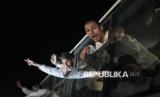 Tahanan Palestina yang dibebaskan disambut kerabat saat mereka tiba di Jalur Gaza setelah dibebaskan dari penjara Israel menyusul perjanjian gencatan senjata antara Hamas dan Israel di Khan Younis, Jalur Gaza, Kamis (27/2/2025). Israel membebaskan sebanyak 620 tahanan Palestina yang sebelumnya ditunda pelepasannya. Para tahanan berasal dari berbagai lapisan masyarakat. Mereka diambil dari rumahnya, dari tempat penampungan sementara, dari sekolah-sekolah PBB, dari rumah sakit, dan tidak pernah dikenakan tuntutan hukum apapun. Pelepasan tahanan Palestina ini memungkasi fase pertama gencatan senjata di Gaza. (FOTO : AP Photo/Jehad Alshrafi)
