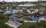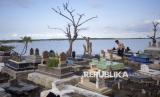 REPUBLIKA.CO.ID, INDRAMAYU -- Warga berziarah ke makam keluarga yang terendam air rob di tempat pemakaman umum (TPU) Desa Eretan Kulon, Kandanghaur, Indramayu, Jawa Barat, Kamis (27/2/2025).