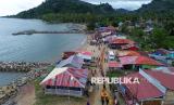 Foto udara warga berarak-arak saat digelarnya tradisi Limau Baronggeh di Sungai Pisang, Padang, Sumatera Barat, Kamis (27/2/2025). Limau Baronggeh yang sudah ditetapkan sebagai Warisan Budaya Tak Benda (WBTb) Indonesia itu merupakan tradisi silaturahmi antar suku di Sungai Pisang menyambut bulan Ramadhan 1446 Hijiryah, yakni dengan bersama-sama mengarak dulang yang dihias kemudian menyeka wajah dengan air perasan limau dan bedak sebagai simbol menyucikan diri. (FOTO : ANTARA FOTO/Iggoy el Fitra)