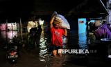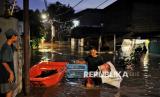 Sejumlah warga mengevakuasi barang-barang dirumahnya yang terendam banjir di Kawasan Pejaten Timur, Jakarta Selatan, Senin (3/3/2025). Banjir setinggi kurang lebih 60 centimeter hingga 150 centimeter yang melanda kawasan tersebut disebabkan oleh meluapnya kali ciliwung imbas kiriman air dari kawasan Bogor. Sebelumnya, Badan Penanggulangan Bencana Daerah (BPBD) Provinsi DKI Jakarta mencatat 28 RT di wilayah Jakarta Selatan dan Jakarta Timur terendam banjir imbas luapan Kali Ciliwung pada Senin (3/3/2025) pagi ini. Diketahui bendungan Katulampa sempat mencapai ketinggian 220 Centimeter atau Siaga 1 dan diperkirakan air sampai di Jakarta pagi ini. (FOTO : Republika/Thoudy Badai)