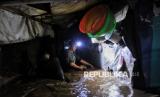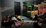 Warga beristirahat saat rumahnya terendam banjir di Kawasan Pejaten Timur, Jakarta Selatan, Senin (3/3/2025). Banjir setinggi kurang lebih 60 centimeter hingga 150 centimeter yang melanda kawasan tersebut disebabkan oleh meluapnya kali ciliwung imbas kiriman air dari kawasan Bogor. Sebelumnya, Badan Penanggulangan Bencana Daerah (BPBD) Provinsi DKI Jakarta mencatat 28 RT di wilayah Jakarta Selatan dan Jakarta Timur terendam banjir imbas luapan Kali Ciliwung pada Senin (3/3/2025) pagi ini. Diketahui bendungan Katulampa sempat mencapai ketinggian 220 Centimeter atau Siaga 1 dan diperkirakan air sampai di Jakarta pagi ini. (FOTO : Republika/Thoudy Badai)