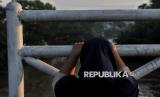 Warga mengamati aliran sungai Ciliwung yang merendam pemukimannya di Kawasan Pejaten Timur, Jakarta Selatan, Senin (3/3/2025). Banjir setinggi kurang lebih 60 centimeter hingga 150 centimeter yang melanda kawasan tersebut disebabkan oleh meluapnya kali ciliwung imbas kiriman air dari kawasan Bogor. Sebelumnya, Badan Penanggulangan Bencana Daerah (BPBD) Provinsi DKI Jakarta mencatat 28 RT di wilayah Jakarta Selatan dan Jakarta Timur terendam banjir imbas luapan Kali Ciliwung pada Senin (3/3/2025) pagi ini. Diketahui bendungan Katulampa sempat mencapai ketinggian 220 Centimeter atau Siaga 1 dan diperkirakan air sampai di Jakarta pagi ini. (FOTO : Republika/Thoudy Badai)