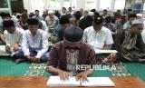 REPUBLIKA.CO.ID, MALANG -- Peserta melantunkan ayat Al Quran dalam Lomba Tartil Sensorik Arab Braile di Masjid An Nur, Unit Pelaksana Teknis (UPT) Rehabilitasi Sosial Bina Netra (RSBN), Malang, Jawa Timur, Senin (3/3/2025).