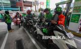 REPUBLIKA.CO.ID, SURABAYA -- Pengemudi ojek daring mengantre untuk mendapatkan bahan bakar minyak (BBM) gratis di salah satu SPBU di Jalan Embong Malang, Surabaya, Jawa Timur, Selasa (4/3/2025).