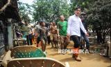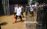 Wakil Presiden Gibran Rakabuming Raka saat meninjau lokasi yang terdampak banjir di Perumahan Pondok Gede Permai, Bekasi, Jawa Barat, Rabu (5/3/2025). Dalam kesempatan itu Wapres Gibran turut meninjau rumah warga yang terdampak banjir sekaligus menanyakan keadaan dan kondisi para warga. (FOTO : Republika/Prayogi)