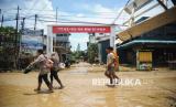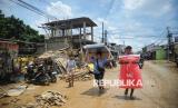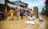 Warga berjalan melintasi lumpur sisa banjir di Perumahan Pondok Gede Permai, Bekasi, Jawa Barat, Rabu (5/3/2025). Banjir dikawasan tersebut sudah surut dan menyisakan lumpur berwarna kecoklatan di jalan dan rumah-rumah warga. Sebagian warga mulai membersihkan sisa-sisa lumpur di rumah mereka. Menurut petugaa banjir di kawasan Pondok Gede Permai mulai surut pada Rabu (5/3/2025) dini hari, pada pukul 01.00 WIB. Sebelumnya, banjir di titik ini jadi salah satu yang terparah dengan ketinggian air mencapai 3 meter. (FOTO : Republika/Prayogi)