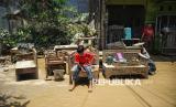 Seorang anak duduk kelelahan usai membersihkan lumpur sisa banjir di Perumahan Pondok Gede Permai, Bekasi, Jawa Barat, Rabu (5/3/2025). Banjir dikawasan tersebut sudah surut dan menyisakan lumpur berwarna kecoklatan di jalan dan rumah-rumah warga. Sebagian warga mulai membersihkan sisa-sisa lumpur di rumah mereka. Menurut petugaa banjir di kawasan Pondok Gede Permai mulai surut pada Rabu (5/3/2025) dini hari, pada pukul 01.00 WIB. Sebelumnya, banjir di titik ini jadi salah satu yang terparah dengan ketinggian air mencapai 3 meter. (FOTO : Republika/Prayogi)