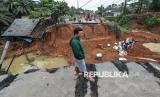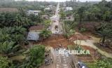 REPUBLIKA.CO.ID, JAMBI -- Warga menyaksikan kondisi jalan lintas Sumatera yang amblas di Desa Sirih Sekapur, Bungo, Jambi, Rabu (5/3/2025).