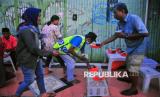Sejumlah warga mengambil makanan untuk berbuka puasa di Warung Sedekah, di Jalan Ahmad Yani, Kota, Kudus, Jawa Tengah, Kamis (6/3/2025). Warung sedekah saat bulan Ramadhan tersebut menyediakan hingga 350 paket makanan dan minuman yang dibagikan secara gratis kepada warga kurang mampu untuk berbuka puasa atau dibawa pulang. (FOTO : ANTARA FOTO/Yusuf Nugroho)