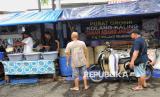 Pedagang melayani pembeli di Pusat Grosir Kolang-Kaling di Pasar Tanah Abang, Jakarta, Jumat (7/3/2025). Menurut pedagang, penjualan kolang-kaling saat ramadhan mengalami peningkatan permintaan hingga 50 persen. Pada hari biasa, pedagang menjual sekitar 50 kilogram perhari, sementara pada saat ramadhan penjualan mencapai 1-2 kwintal perhari. Harga kolang-kaling dijual mulai Rp13 ribu hingga Rp20 ribu per kilogram tergantung ukuran dan kualitasnya. (FOTO : Republika/Thoudy Badai)