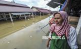 REPUBLIKA.CO.ID, JAMBI -- Pedagang mengamati kondisi Pasar Tanjung Bungur yang terendam banjir luapan Batang Tebo di Tebo, Jambi, Sabtu (8/3/2025).
