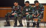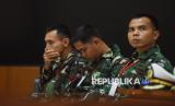 REPUBLIKA.CO.ID, JAKARTA -- Tiga prajurit TNI AL terdakwa kasus pembunuhan bos rental mobil dan penadahan mobil, Kelasi Kepala Bambang Apri Atmojo, Sertu Akbar Adli, dan Sertu Rafsin Hermawan duduk saat skors sidang dengan agenda pembacaan tuntutan di Pengadilan Militer II-08, Jakarta Timur, Senin (10/3/2025).