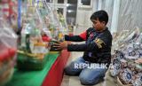 Pekerja menyelesaikan proses pembuatan parsel lebaran di workshop Nabila Parsel Kalibata, Jakarta Selatan, Rabu (12/3/2025). Jumlah permintaan parsel pada pekan kedua ramadhan mulai menggeliat hingga mengalami kenaikan 10-15 persen. Nabila Parsel biasanya menyediakan bahan-bahan untuk paket parsel satu bulan sebelum bulan ramadhan, hal ini dilakukan untuk mengantisipasi kelangkaan bahan serta lonjakan harga bahan parsel. Harga satu paket dibanderol mulai Rp450 ribu hingga Rp3 juta tergantung jenis paket parsel. (FOTO : Republika/Thoudy Badai)