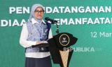 Presiden Direktur BCA Syariah Yuli Melati Suryaningrum memberikan sambutan sebelum penandatanganan nota kesepahaman tentang Penyediaan dan Pemanfaatan Layanan Jasa Perbankan guna memberikan layanan kemudahan penyaluran Zakat, Infak, Sedekah dan Dana Sosial Keagamaan Lainnya (ZIS-DSKL) bagi masyarakat di Jakarta, Rabu (12/3/2025). BAZNAS bersama BCA Syariah meningkatkan sinergi untuk penghimpunan dan penyaluran zakat nasabah, meningkatkan aksesibilitas layanan zakat, peningkatan literasi dan inklusi, dan pengembagan digitalisasi layanan pembayaran zakat. (FOTO : Dok Republika)