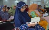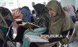 REPUBLIKA.CO.ID, BANDUNG -- Warga mengikuti pembelajaran membaca Alquran dalam program Gerakan Berantas Buta Huruf Alquran di Kelurahan Merdeka, Jalan Patrakomala, Kota Bandung, Kamis (13/5/2025).