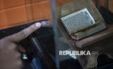 Jari tangan pengunjung menunjuk koleksi mushaf Al Quran di Museum Sejarah Perkembangan Islam, Menara Al Husna kompleks Masjid Agung Jawa Tengah (MAJT), Semarang, Jawa Tengah, Kamis (13/3/2025). Museum yang mengoleksi peninggalan sejarah masa Islam dari berbagai daerah di Jawa Tengah itu menjadi salah satu destinasi wisata religi yang dikunjungi umat Islam saat bulan Ramadhan. (FOTO : ANTARA FOTO/Aprillio Akbar)