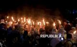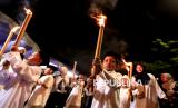 REPUBLIKA.CO.ID, GORONTALO -- Sejumlah peserta mengikuti pawai pada Festival Obor di Kota Gorontalo, Gorontalo, Sabtu (15/3/2025).