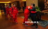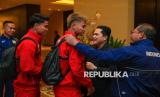 REPUBLIKA.CO.ID, JAKARTA Ketua Umum PSSI Erick Thohir menyalami pemain saat melepas pemain dan ofisial Timnas Indonesia menuju Australia di Jakarta, Ahad (16/3/2025).