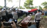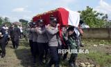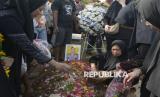 Keluarga menaburkan bunga di atas makam almarhum Bripda M. Ghalib Surya Ganta setibanya di rumah duka di Bandar, Lampung, Lampung, Selasa (18/3/2025). Sebanyak tiga anggota Polri yaitu Kapolsek Negara Batin Way Kanan Iptu Lusiyanto, Bripka Petrus Apriyanto dan Bripda M Ghalib Surya Ganta tewas ditembak oknum anggota TNI saat menggerebek judi sabung ayam di Kampung Karang Manik, Kecamatan Negara Batin, Kabupaten Way Kanan, Lampung. (FOTO : ANTARA FOTO/Ardiansyah)
