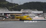REPUBLIKA.CO.ID, CILEGON -- Pekerja menyelesaikan pembuatan marka jalan di Pelabuhan Merak, Kota Cilegon, Banten, Jumat (21/3/2025).