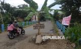Pengendara motor melintas didekat pohon pisang yang ditanam pada jalan yang rusak di Kadilanggon, Wedi, Klaten, Jawa Tengah, Sabtu (22/3/2025). Warga setempat melakukan aksi menanam pohon pisang di sejumlah titik pada jalan penghubung antara Klaten, Jawa Tengah dengan Gunung Kidul, Daerah Istimewa Yogyakarta yang rusak akibat truk bermuatan tanah uruk. (FOTO : ANTARA FOTO/Aloysius Jarot Nugroho)