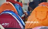 REPUBLIKA.CO.ID, BANDUNG -- Ratusan peserta itikaf mendirikan tenda untuk mengikuti itikaf 10 malam terakhir Ramadhan 1446 Hijriah di Masjid Raya Habiburrahman PTDI, Kota Bandung, Jawa Barat, Ahad (23/3/2025).