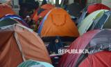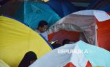 Ratusan peserta itikaf mendirikan tenda untuk mengikuti itikaf 10 malam terakhir Ramadhan di Masjid Raya Habiburrahman PTDI, Kota Bandung, Jawa Barat, Ahad (23/3/2025). Selama 10 malam terakhir Ramadhan peserta fokus beribadah, salah satunya untuk mendapatkan kemuliaan Lailatul Qadar. (FOTO : Edi Yusuf)