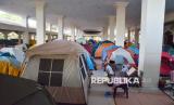 Ratusan peserta itikaf mendirikan tenda untuk mengikuti itikaf 10 malam terakhir Ramadhan 1446 Hijriah di Masjid Raya Habiburrahman PTDI, Kota Bandung, Jawa Barat, Ahad (23/3/2025). Selama 10 hari terakhir Ramadhan peserta fokus beribadah seperti membaca Alquran, salah satunya untuk mendapatkan kemuliaan Lailatul Qadar. (FOTO : Edi Yusuf)