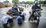 Panitia menguras bensin sepeda motor milik pemudik yang mengikuti Program Mudik Gratis DKI Jakarta 2025 di Terminal Pulo Gadung, Jakarta, Selasa (25/3/2025). Program Mudik Gratis DKI Jakarta 2025 tersebut bertujuan menekan banyaknya pemudik yang menggunakan sepeda motor sehingga masyarakat dapat melaksanakan Idul Fitri dengan selamat, aman, dan nyaman. Rencananya pemberangkatan pemudik menggunakan bus akan dilakukan pada 27 Maret 2025 dari Monas, sementara truk yang membawa sepeda motor akan diberangkatkan pada 26 Maret 2025 dari Terminal Pulogadung. Kota tujuan pemudik sepeda motor yakni, Yogyakarta, Solo, Wonogiri dan Semarang. (FOTO : Republika/Prayogi)